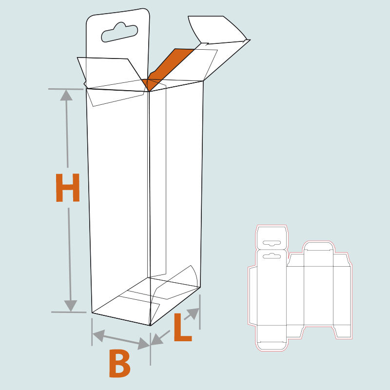 Langsnaad verlijmde hangdoosjes worden voor allerlei doeleinden gebruikt. Het doosje is aan de bovenzijde voorzien van een kartonnen flap voorzien van een eurolock. Een eurolock – ook wel eurosleuf genoemd – wordt gebruikt om een verpakking in een rek of presentatiemolen op te hangen. Het doosje is aan beide zijden voorzien van een klepsluiting. Het doosje is aan één zijde verlijmd en kan voorzien worden van een venster.