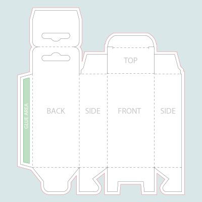 Het doosje is aan de onderzijde voorzien van een duwbodem, ook wel een Zweedse bodem genoemd, en aan de bovenzijde voorzien van een klepsluiting. Bij een duwbodem haken de afzonderlijke bodemkleppen in elkaar en draagt de inhoud bij aan de stevigheid van de bodem. Het doosje is aan één zijde verlijmd en kan voorzien worden van een venster.