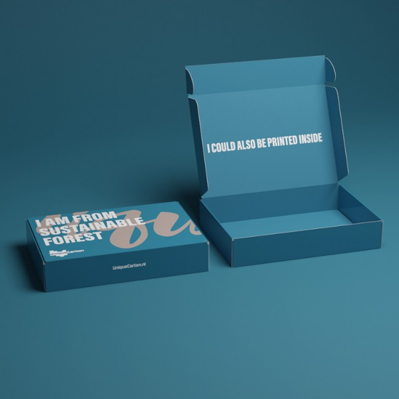 Een vouwdoos met scharnierende deksel heeft een grote opening en is ideaal voor het verpakken van platte producten. Met kliksluiting binnenin en insteekflappen aan de buitenkant kan deze vouwdoos helemaal zonder lijm in elkaar worden gezet. Dit model is ook bekend als verzenddoos of postdoos (Fefco 0427) en geven uw zending een duidelijke herkenbaarheid op het moment dat het doosje bij de klant binnenkomt. Daardoor wordt het positieve gevoel over het product en de bestelling versterkt. Het doosje met een klep kan makkelijk in elkaar gevouwen worden en is extra stevig, doordat wij deze dubbelwandig uitvoeren. Een andere mogelijkheid is een verzenddoosje met een losse bodem en deksel. Voor de toepassing als verzenddoos adviseren wij een doos vervaardig uit golfkarton, zie golfkartonnen dozen.